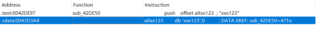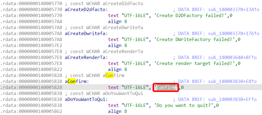一旦知道字符串内容,使用IDA可以轻易地在.rdata段中搜索出其位置,进而找到引用字符串的所有代码片段。
