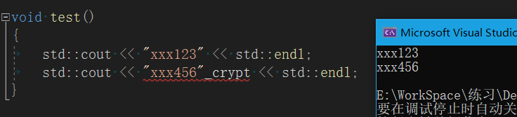 printf("%s", "abc"_crypt); // 2. 使用自定义字面量